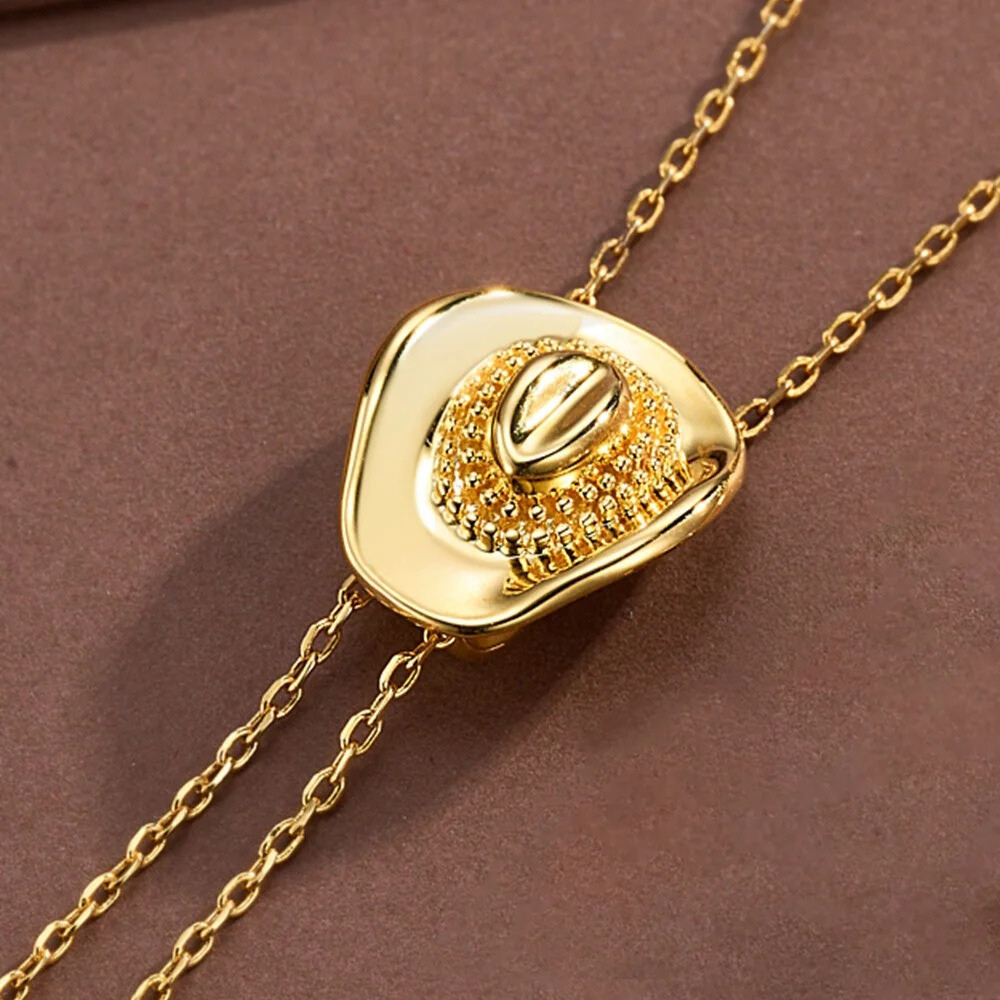 The Cowgirl Hat Necklace is a charming tribute to western spirit, blending rustic allure with timeless elegance. Its intricately designed hat pendant shines with beautiful detailing, making it a standout accessory for anyone who loves the wild frontier.