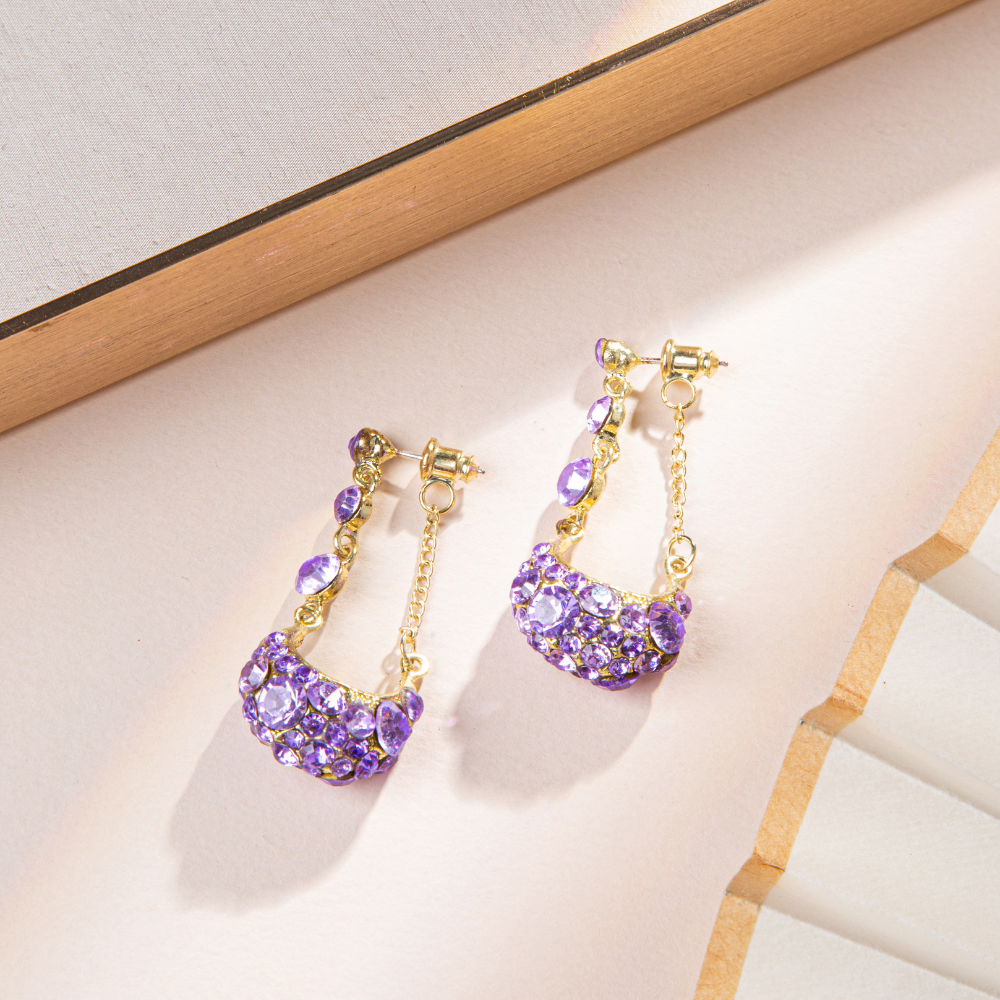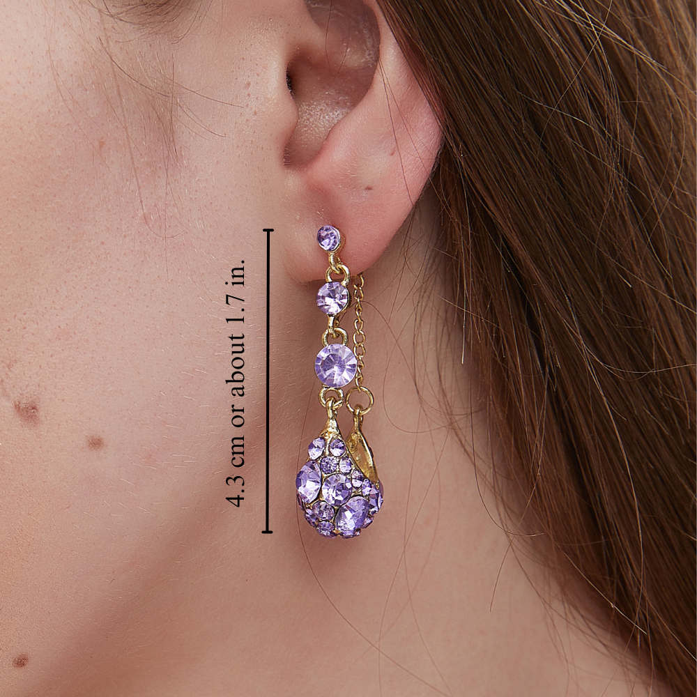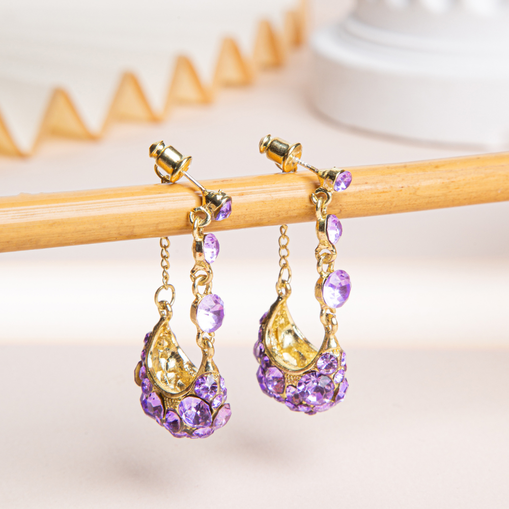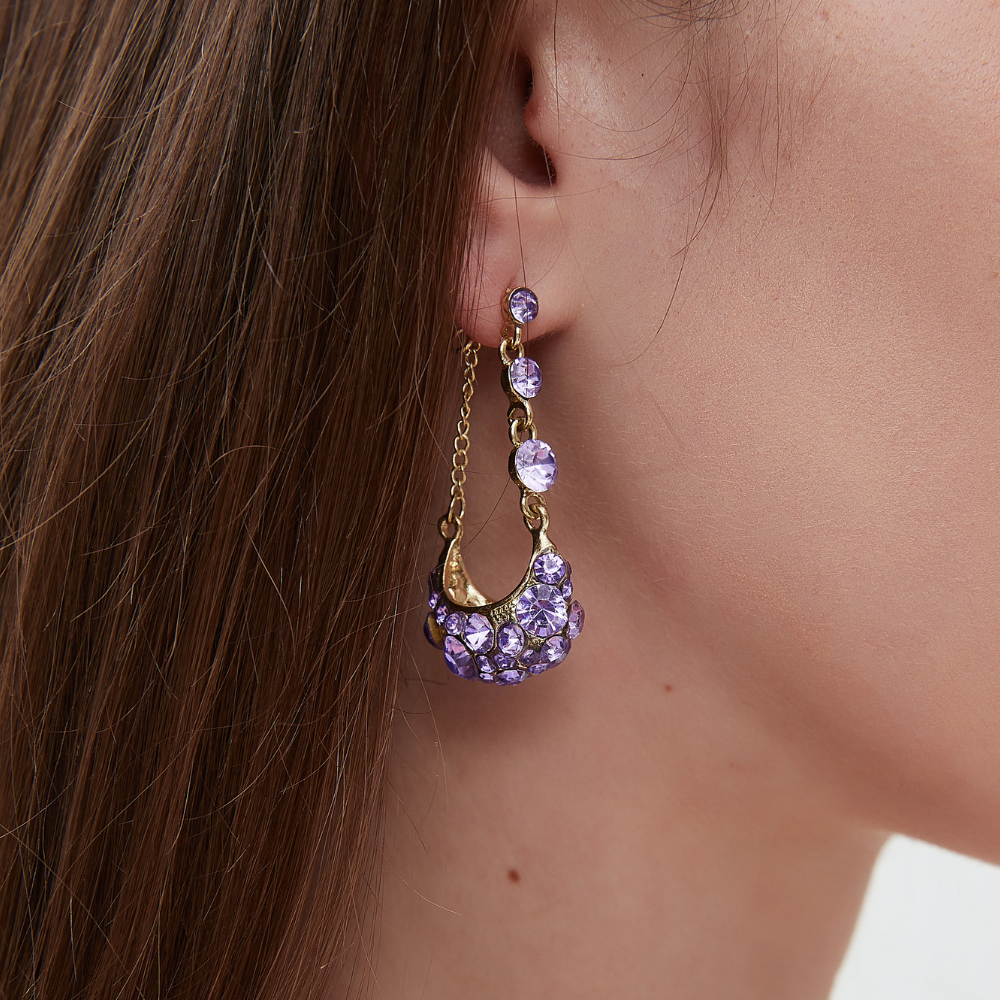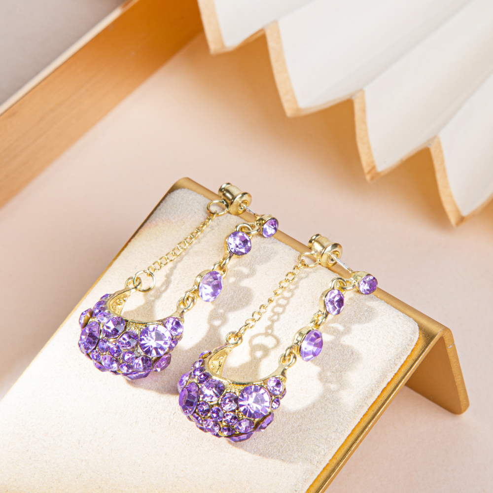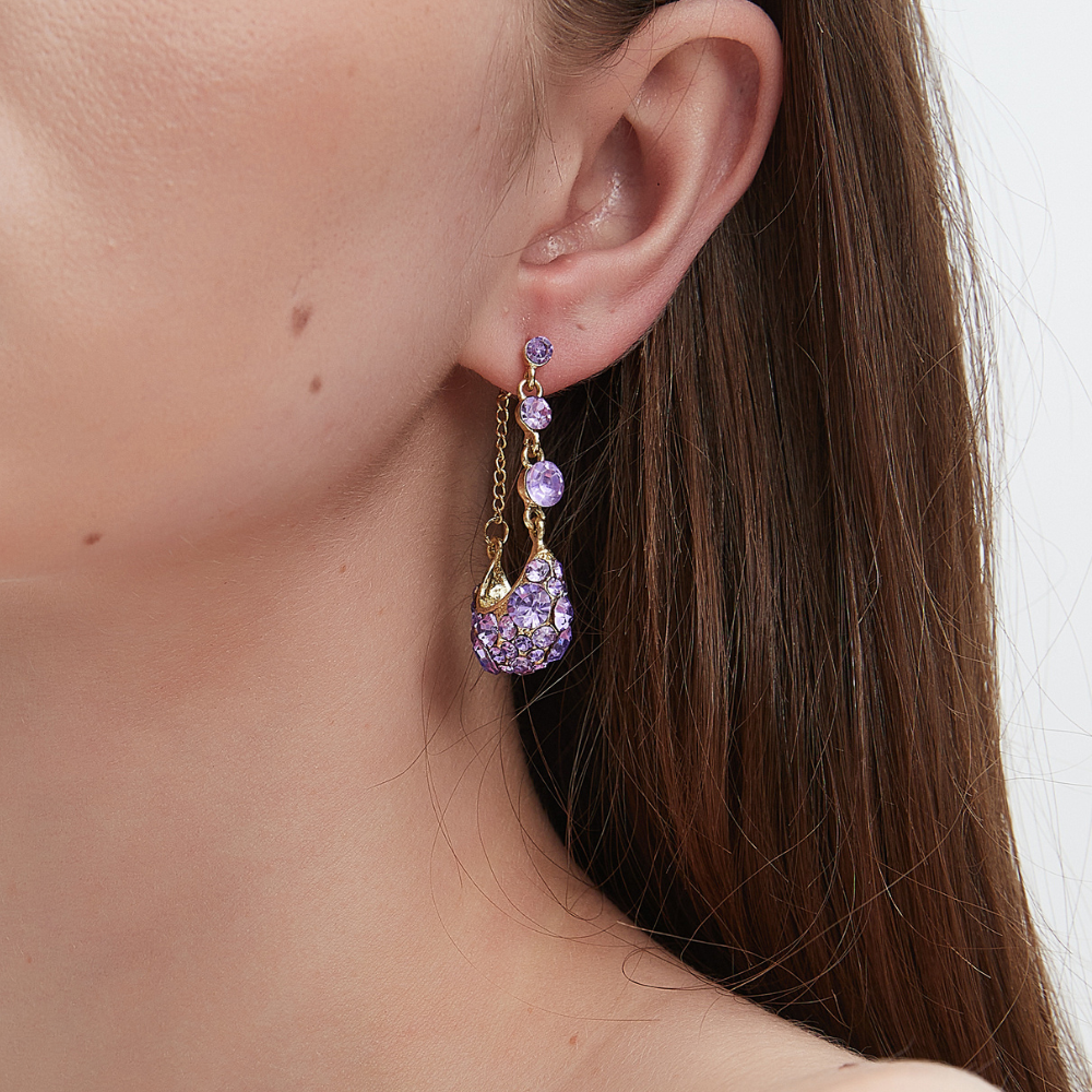 A: The Purple Blossom Earrings are made from high quality gold plated alloy, and beautiful rhinestones.