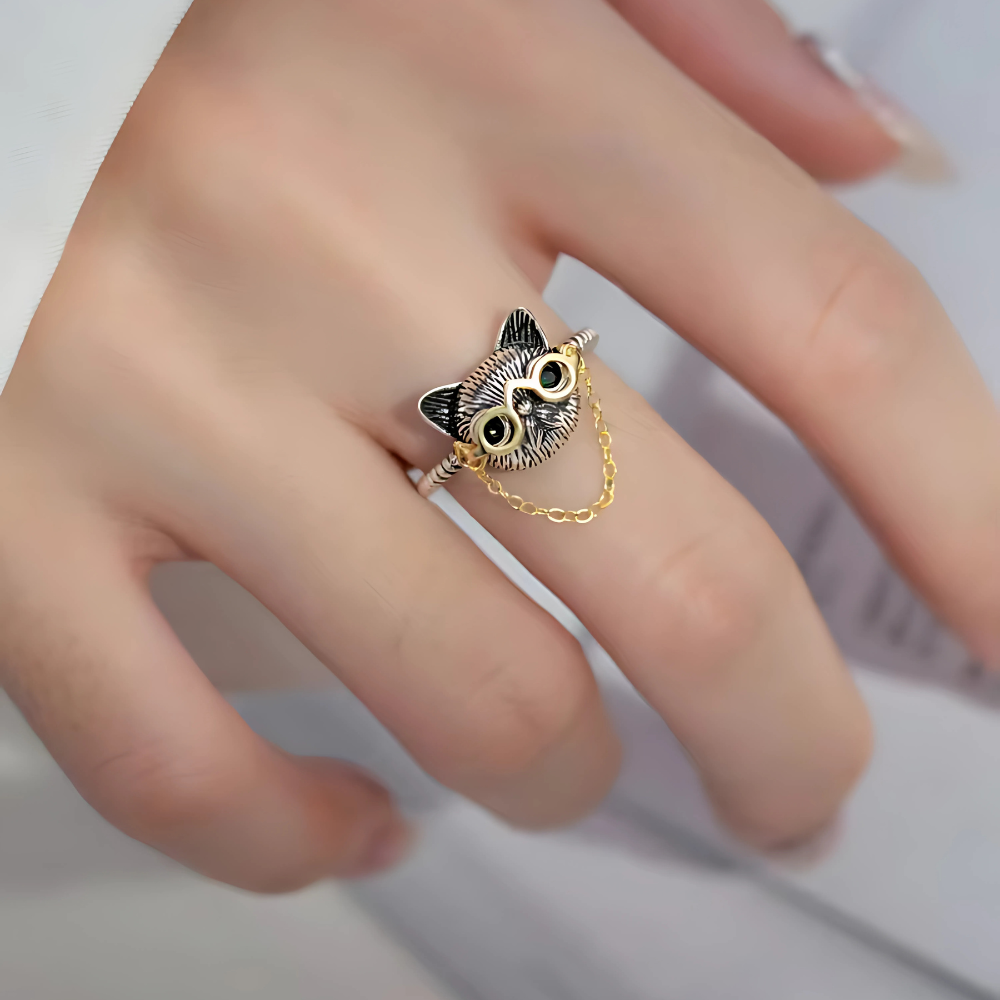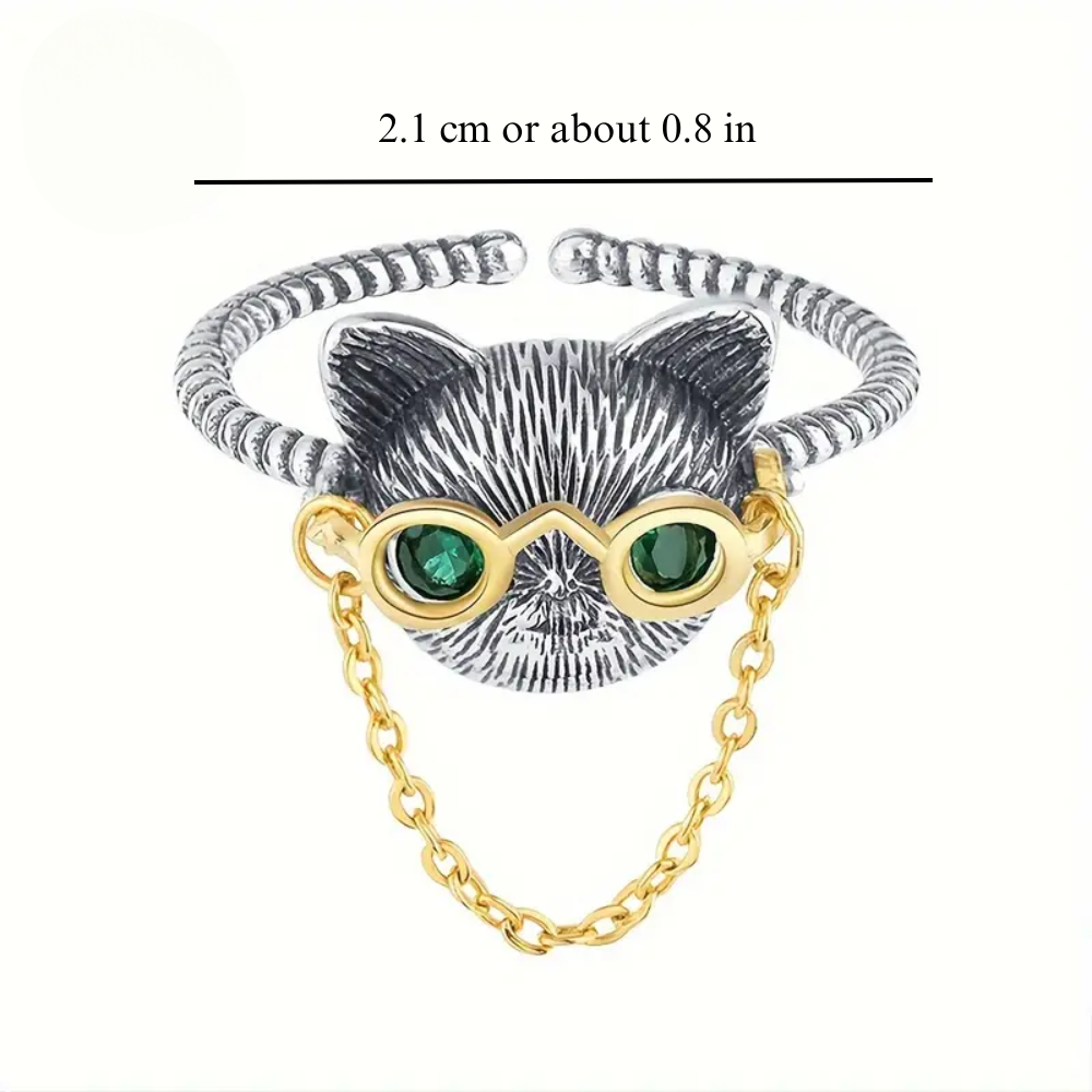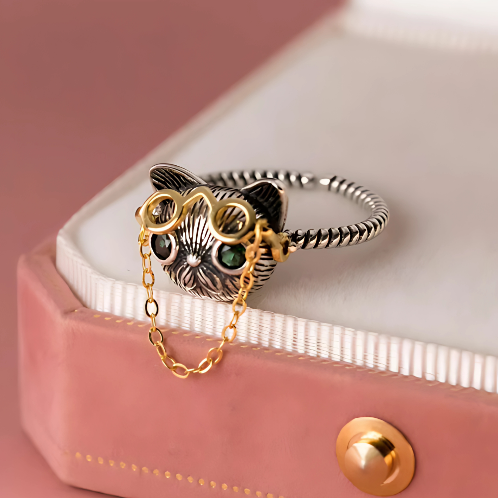 QUIRKY CAT GLASSES RING (ADJUSTABLE)