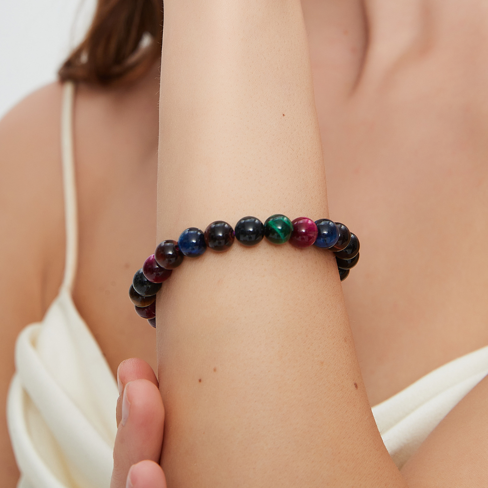 The Tiger's Eye Bracelet exudes a captivating blend of wonder and elegance, featuring stunning multicolor tiger's eye beads that shimmer like a nebula. Known for its grounding and focus-enhancing properties, this bracelet becomes more than just a stylish accessory—it’s a meaningful tool for mindfulness.